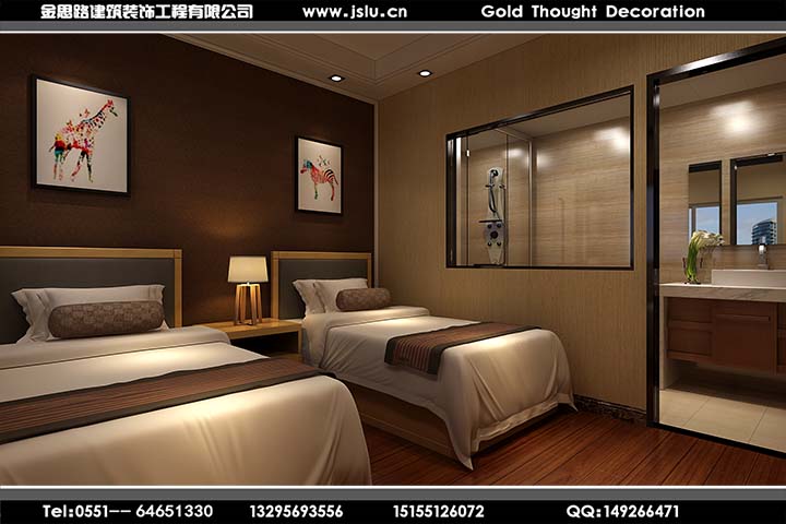 客房的裝修的好壞直接反映出賓館的水平,客房在總體的空間布局上,要做到平淡無奇,穩(wěn)中求勝。要重點說明的是,在客房布置方面,床是絕對是主角,床的位置很大程度上決定了空間的設計。如果賓館的客房做好了,賓館裝修就已經(jīng)成功了百分之八十了。